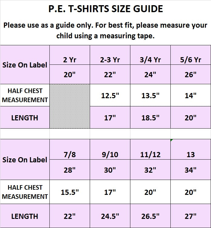 - P.E. T-Shirts are generous in size