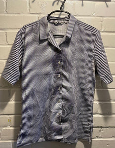 Pre-Loved Navy Short Sleeve Revere Collar Striped Blouse