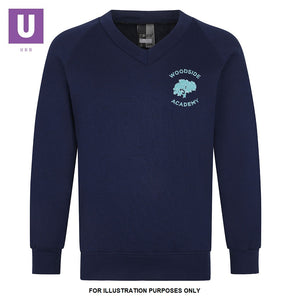 Woodside Academy Navy V-Neck Sweatshirt with logo (Year 6)