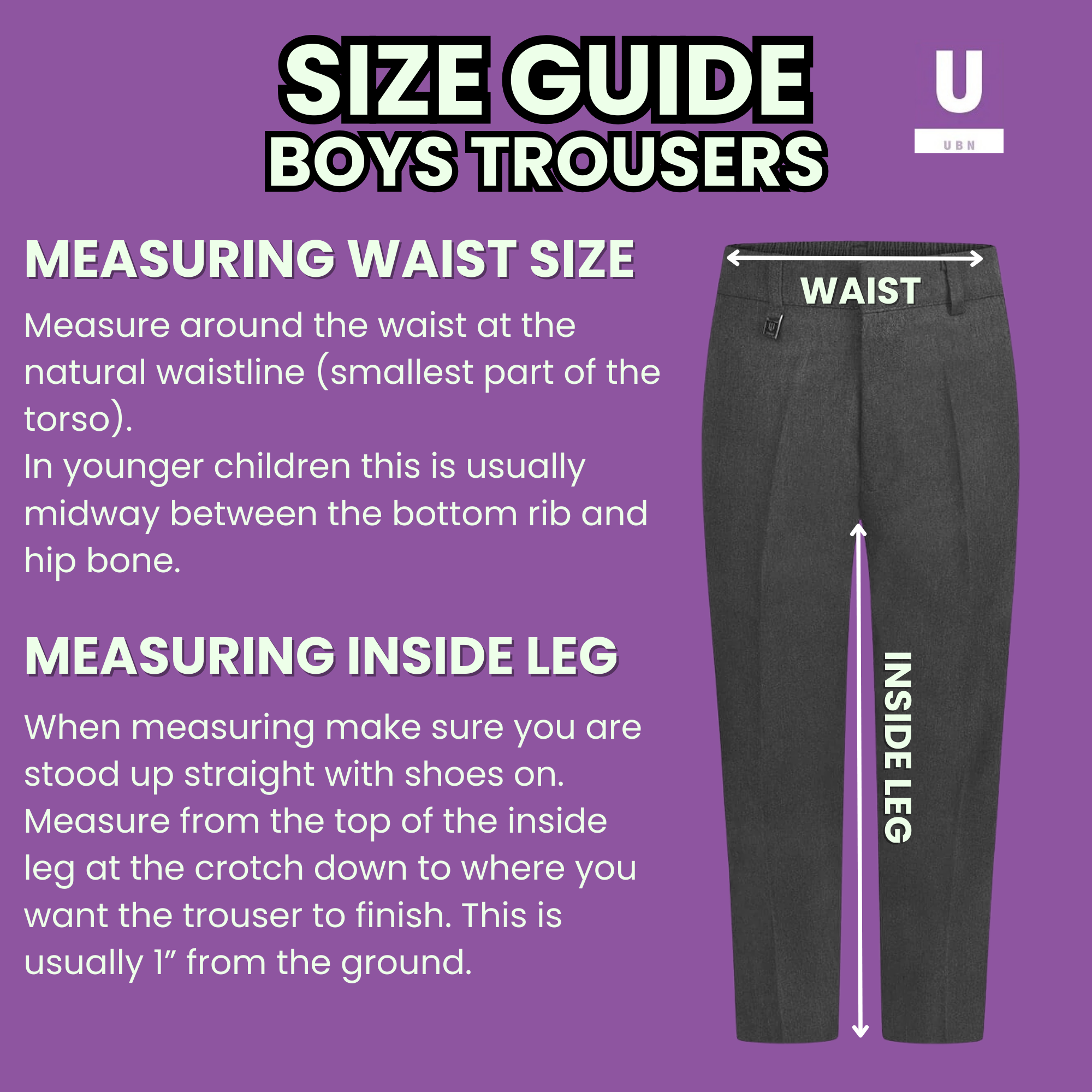 • Flat front with elasticated back waist